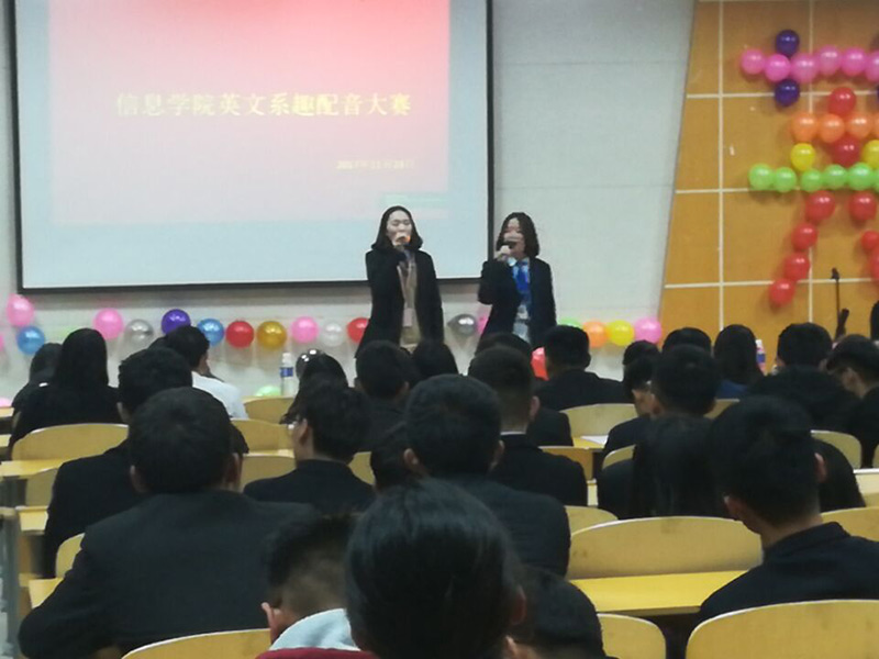 11月23日,由校团委主办、信息学院团总支承办的“英语配音大赛”在学院一号多媒体拉开帷幕,参加本次活动的老师有校团委书记高琳,副书记张实、副书记向宏,信息学院英文系主任陈亚玺,信息学院团总支书记张心蕊和部分师生参加了此次活动,信息学院英文系讲师担任了本次活动的评委。