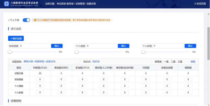 智能组卷:千人千卷,按知识点缺陷定制试题,杜绝泄题。