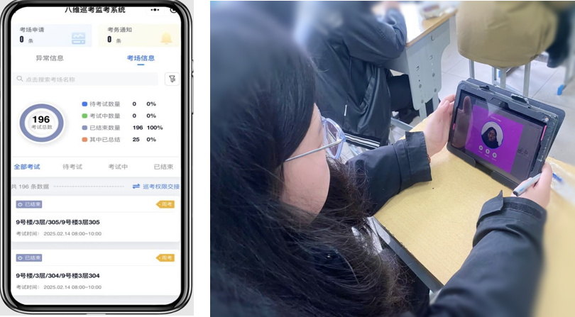 防作弊体系:人脸识别核验身份,手机端智能巡考监控考试过程。