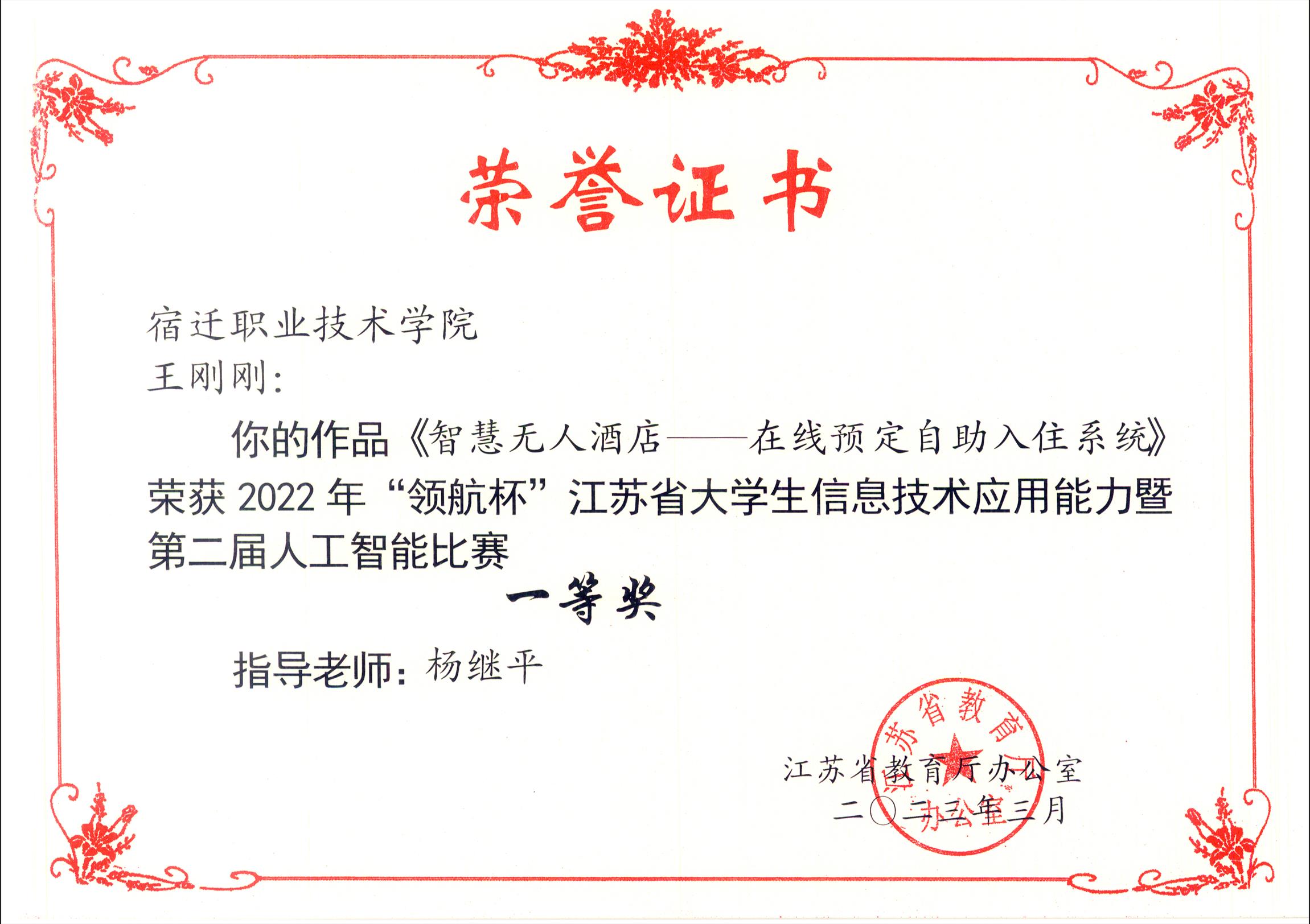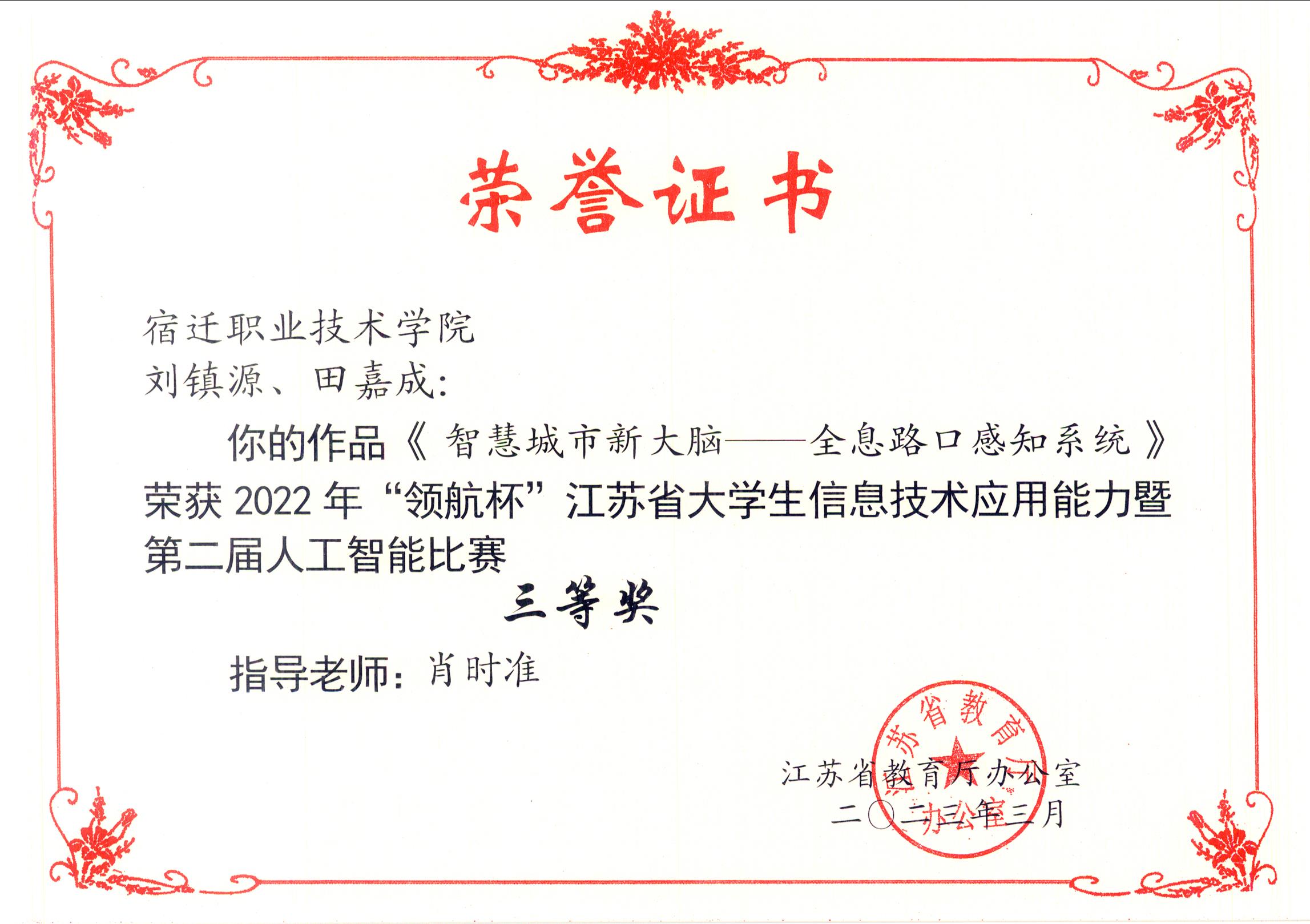 在2022年“领航杯”江苏省大学生信息技术应用能力暨第二届人工智能比赛中,我校学子共提交3项作品,3项作品均斩获佳绩。